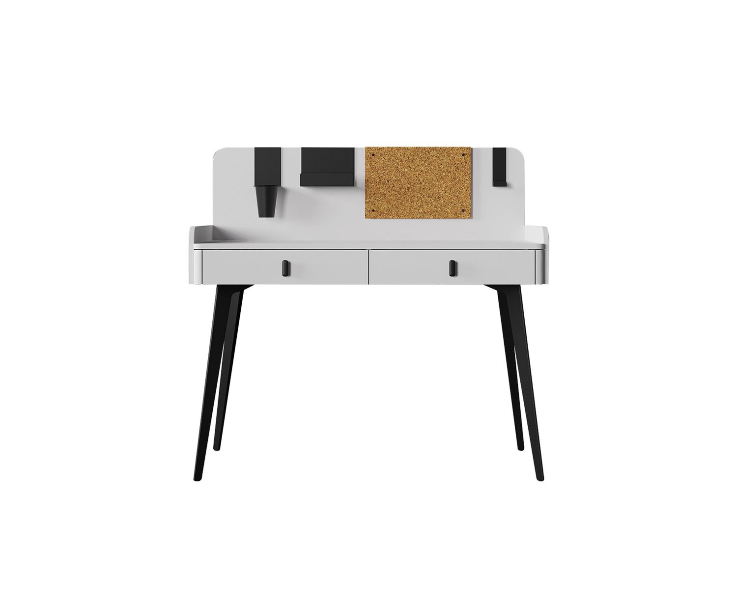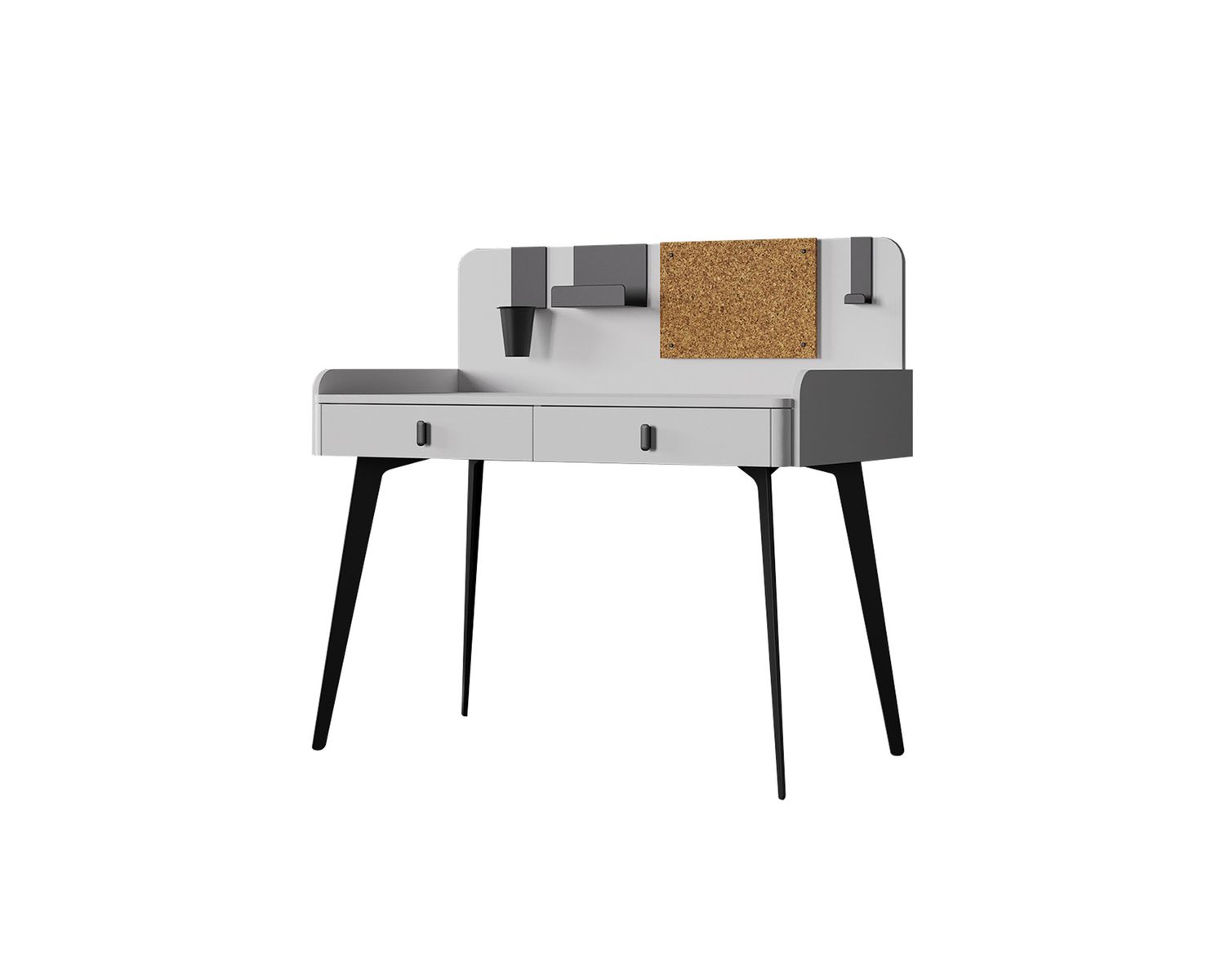 Besonders hervorzuheben ist die integrierte Kork-Pinnwand. Hier können kleine Künstler ihre Meisterwerke präsentieren oder wichtige Notizen anheften. Verschiedene Ablagemöglichkeiten bieten zusätzlichen Stauraum für Stifte, Schreibutensilien oder Dekoration, sodass alles seinen Platz findet.
