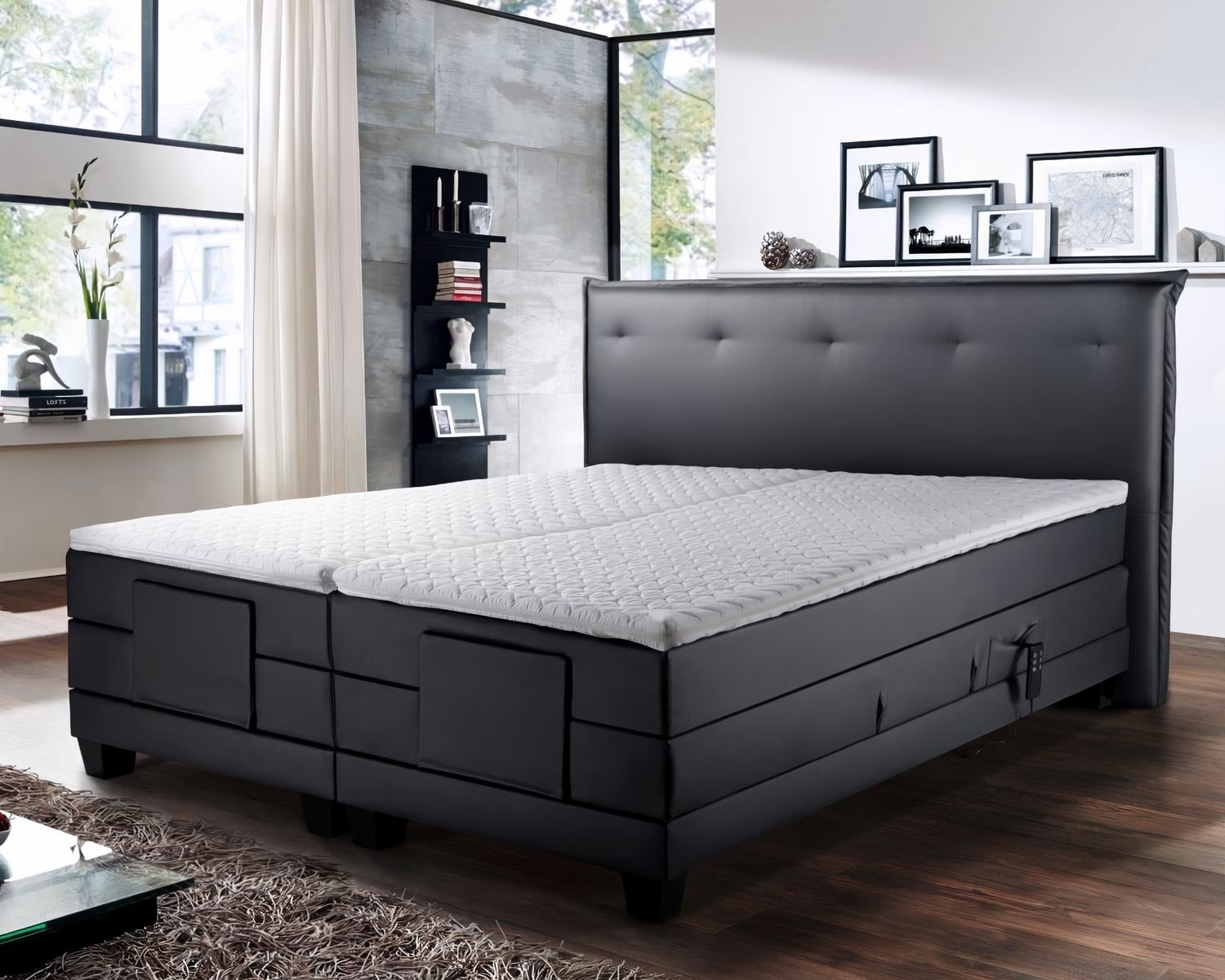 Niagara heißt dieses hochwertige Boxspringbett, welches starr, mit Bettkasten oder mit Elektro-Motor erhältlich ist. Wenn Sie das Bett mit Motor bestellen, können Sie die Stellung der Matratzen ganz bequem per Fernbedienung verändern und die Fernbedienung dann an der Seite des Bettes festhängen.
